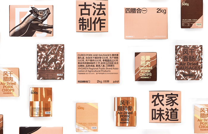 荊門食品包裝系列顏色的創(chuàng)意也很簡單,就是荊楚大地的文化特征,楚國尚紅,但我要提純這個顏色,因為要表現(xiàn)一些食品,這個紅要干凈,薄一點兒。同時當(dāng)?shù)卣苍谕瞥鰠^(qū)域品牌的概念,也是希望能走出傳統(tǒng)的農(nóng)副產(chǎn)品的范疇,希望有一些比較時尚的感覺。