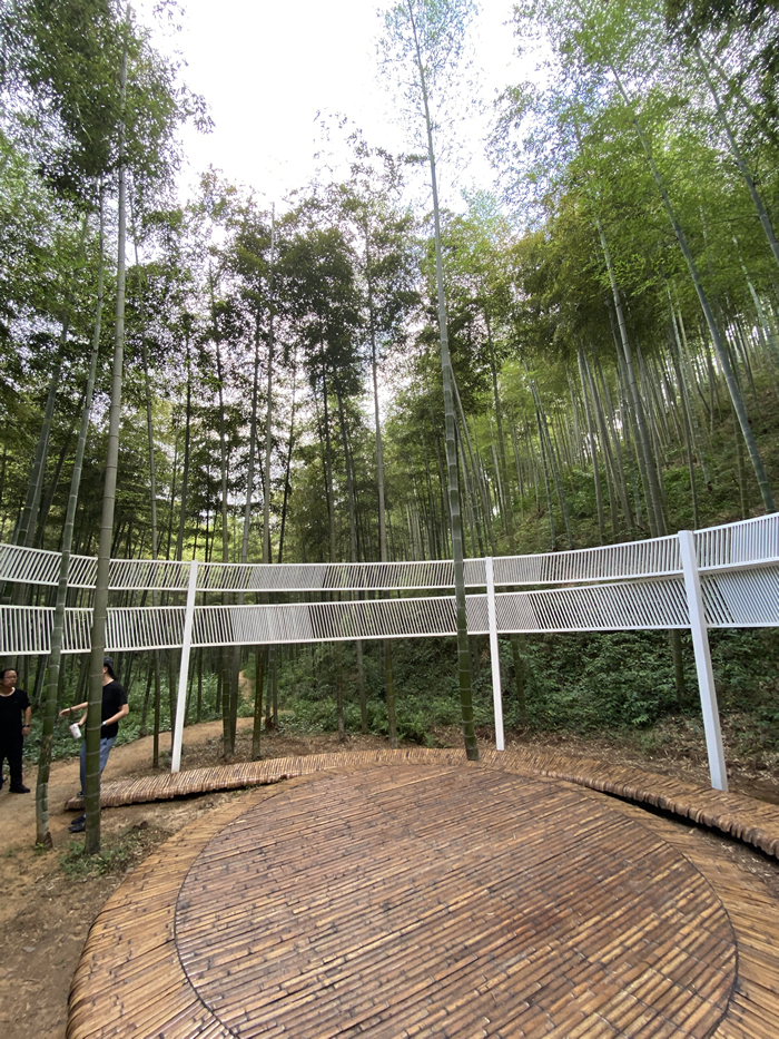 陳棟:青山村大部分的村民都是清末的時(shí)候遷移進(jìn)來(lái)的,以溫州和臺(tái)州后裔為主。它原有的產(chǎn)業(yè)比較單一,村子主要是以竹子、賣筍為核心的農(nóng)業(yè)價(jià)值。我們對(duì)于在地性的挖掘需要和在地的人共同創(chuàng)造,如果要從產(chǎn)業(yè)鄉(xiāng)村振興的邏輯上來(lái)講,我認(rèn)為可以把這里變?yōu)榍嗌皆O(shè)計(jì)藝術(shù)村,以“設(shè)計(jì)藝術(shù)”產(chǎn)業(yè)的內(nèi)容來(lái)做。對(duì)于這次藝術(shù)節(jié),我們希望把這些裝置、表演、新藝術(shù)做成新的藝術(shù)衍生品。