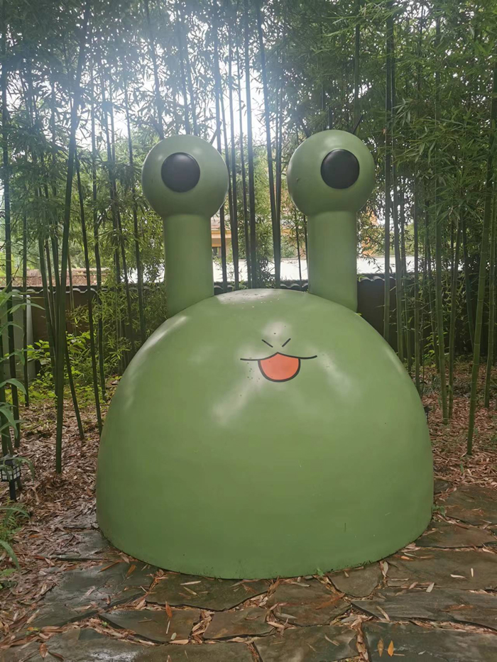 除了山野中的裝置外,鄉(xiāng)村公共場(chǎng)地中的作品更具趣味性,如生態(tài)草坪上的鄧卓越的《民族不倒翁》,張小川的《蛋是》,自然學(xué)校里丸山純奈的《蛙之助》。漫步小道時(shí),也會(huì)不經(jīng)意發(fā)現(xiàn)一些小型作品:森林邊涂鴉的小鳥(niǎo)、田地邊的金屬蒲公英花球,幾只木桿上的小貓頭鷹,它們?cè)趥鞑ド鷳B(tài)知識(shí)的同時(shí),又為藝術(shù)季增添了可愛(ài)童稚的氣息。