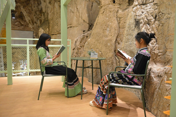 圖 12:村民在溶洞圖書館內(nèi)閱讀。(照片:曹卿)