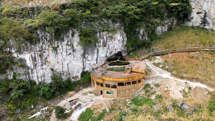 圖11:溶洞入口處曲線閱讀臺。(照片:曹卿)