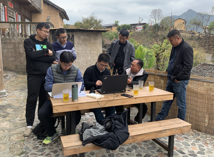 圖 7:在推進(jìn)設(shè)計和施工時,設(shè)計團(tuán)隊廣謀從眾,集思廣益。圖為設(shè)計團(tuán)隊與村委會、施工方和運(yùn)營商在現(xiàn)場針對方案進(jìn)行現(xiàn)場會議。從某種意義上講,溶洞圖書館是不同參與者的共謀之果。(攝影:陽威)