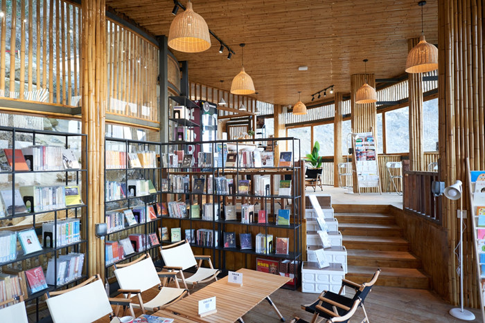 鳥瞰溶洞圖書館入口處及“鳥窩書店”
