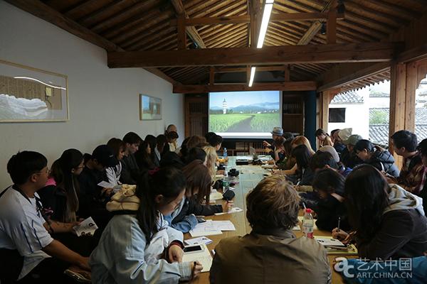 碧山工銷社聯(lián)合創(chuàng)始人王勇在工銷社二層會議室為游學團講課
