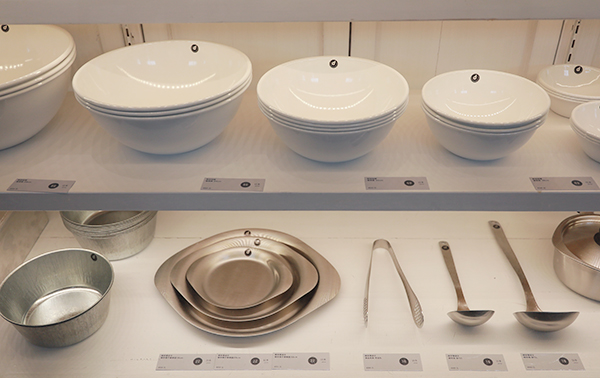 前店的售賣區(qū)是工銷社最有特色的空間,也是D&DEPARTMENT產(chǎn)品最集中展示的區(qū)域。工銷社保留了上世紀六七十年代老工銷社的柜臺、櫥柜的形式感。青色泛舊的木櫥窗,以及店員與消費者相隔柜臺交流的方式,令都市人產(chǎn)生懷舊感和親切感。雖然形式傳統(tǒng),但商品的擺放、燈光的設置、店面清潔程度、店員對商品熟悉程度則是按照D&DEPARTMENT的要求嚴格執(zhí)行。來自日本總店的高橋惠子、福岡店的阿部和東京店的齊藤等日本員工與中國員工一起工作,不僅參與開業(yè)籌備,也親自示范店面的工作要領,其專業(yè)化程度和職業(yè)精神令人欽佩。