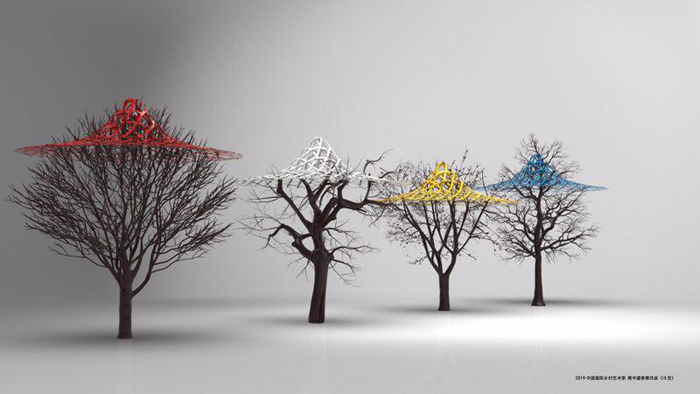 中國(guó)美術(shù)家協(xié)會(huì)雕塑藝術(shù)委員會(huì)副主任傅中望在新聞發(fā)布會(huì)上闡釋了自己作品《斗笠》的創(chuàng)作思路。他談到在酉陽(yáng)的村子里考察的時(shí)候發(fā)現(xiàn)了一頂在墻上掛著的斗笠,回憶起了他曾經(jīng)下鄉(xiāng)耕作插秧的四年經(jīng)歷。于是他創(chuàng)作了幾頂由竹編制而成的巨大斗笠,將把這幾頂斗笠戴到大樹上。