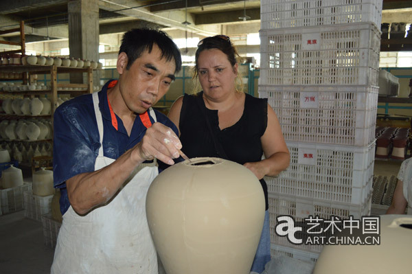 荷蘭藝術(shù)家Nicole Donkers在與陶器工作人員交流