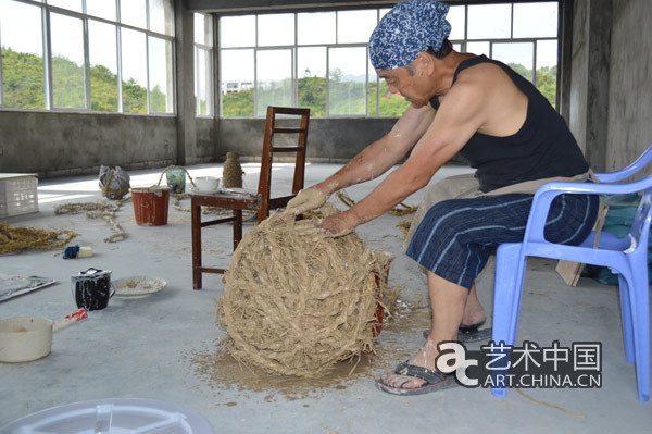 日本藝術(shù)家原田久嘗試用繩子纏成一個(gè)球體,并在球體表面澆上漿狀的陶泥,通過高溫將里面的繩子全部燒盡之后,留下一個(gè)球型的模具,用此來創(chuàng)作新的陶瓷藝術(shù)品。