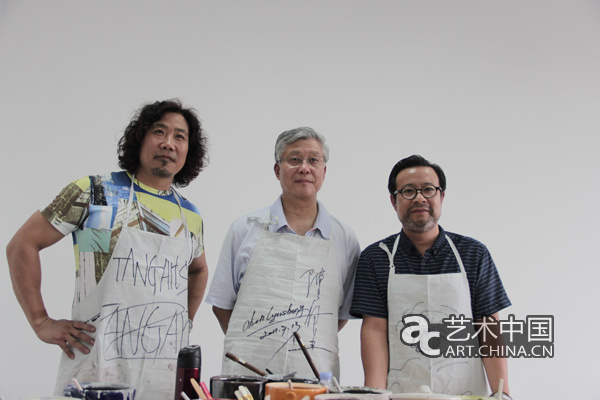 國家博物館副館長(zhǎng)陳履生今天向荷蘭藝術(shù)家Brigitte、Nicole以及美國麻省美院美術(shù)系主任梁漢昌介紹了他這兩天創(chuàng)作的作品,真,善,美,禮是中國的傳統(tǒng)文化。陳履生將會(huì)在他9月13日廣州的個(gè)展上,在其攝影、書法作品之外添加陶瓷這個(gè)新的品種來豐富展覽。