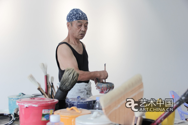 日本藝術(shù)家原田久的作品關(guān)注“天?地?人”的宇宙觀和真理。他認(rèn)為,作品僅僅被觀看是不夠的,重要的是表現(xiàn)真理。為了鍛煉自己對真理的感覺,他常常在盛夏和深冬在瀑布下練習(xí)太極和禪坐,在瀑布和寒冷中沖洗人身上的污垢。在他工作室墻上掛著一件他在這邊創(chuàng)作的繪畫,畫面中他表現(xiàn)了一個球滾出來的軌跡,畫面中的球代表藝術(shù)家自己,軌跡代表人生,最后向上的一筆代表死亡。一生摸爬滾打,每個人都是如此。