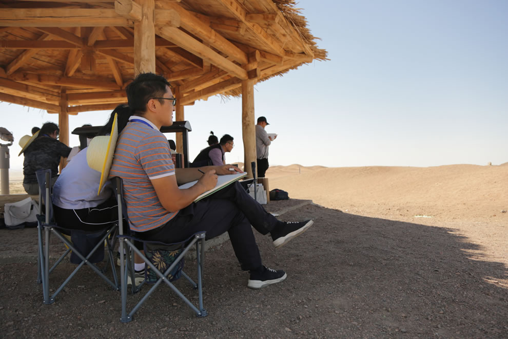 中國(guó)藝術(shù)家王海強(qiáng)在寫(xiě)生