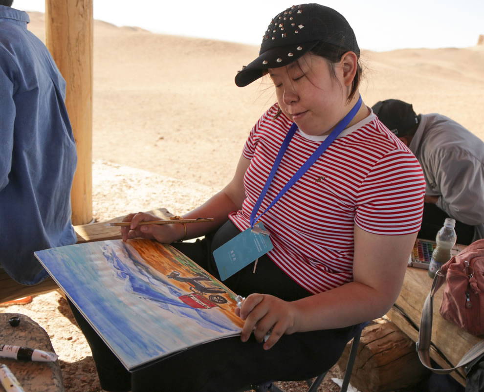 中外藝術(shù)家在陽(yáng)關(guān)景區(qū)涼亭集體寫(xiě)生
