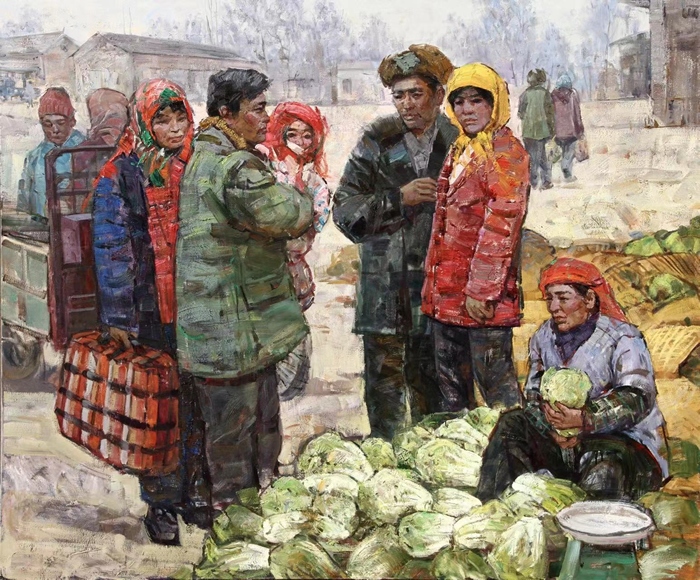 《農(nóng)村早市》,180×150cm,2017年