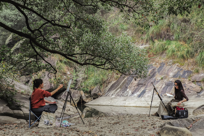 泰國(guó)藝術(shù)家陳麗玲(Bunjapat Chaisanguantham)與馬來(lái)西亞藝術(shù)家林曉玲(Ling Siaw Lyn)在秀峰寫生創(chuàng)作