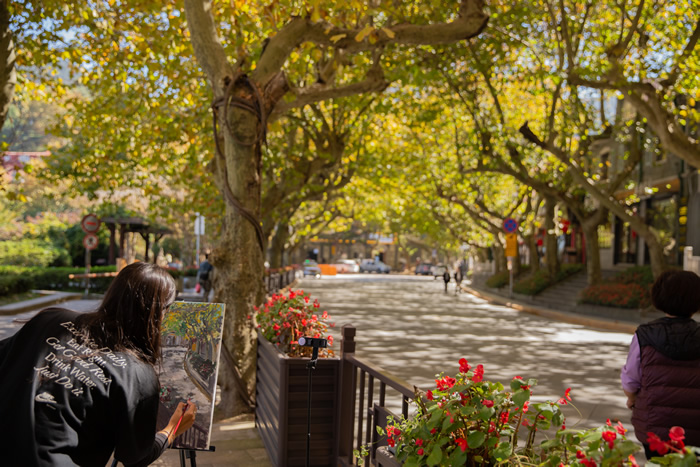 國際藝術(shù)家在牯嶺鎮(zhèn)廣場寫生現(xiàn)場