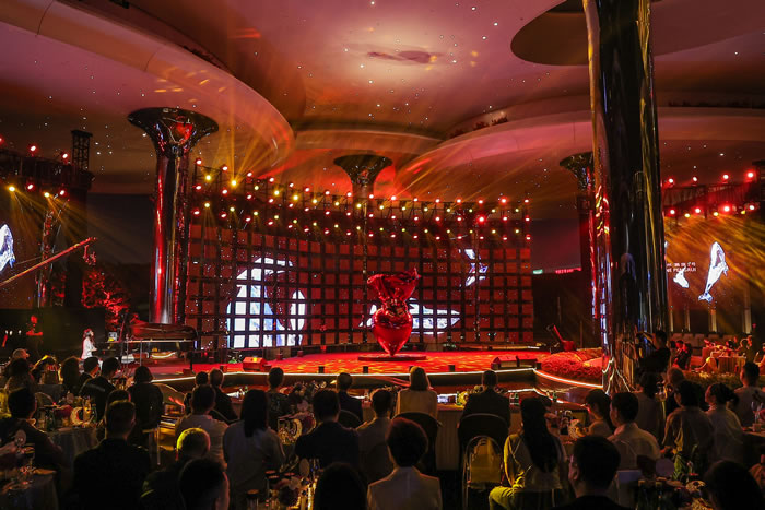 伴隨著小提琴演奏家陳曦、國際鋼琴家孫佳依、以及著名舞蹈家胡沈員的殿堂級表演,在鵬瑞集團(tuán)董事局主席徐航先生與佳士得亞太區(qū)總裁Francis Belin(龐智鋒)先生的共同揭幕下,杰夫·昆斯世界級雕塑作品《圣心》在萬眾期待下終于揭開神秘面紗。