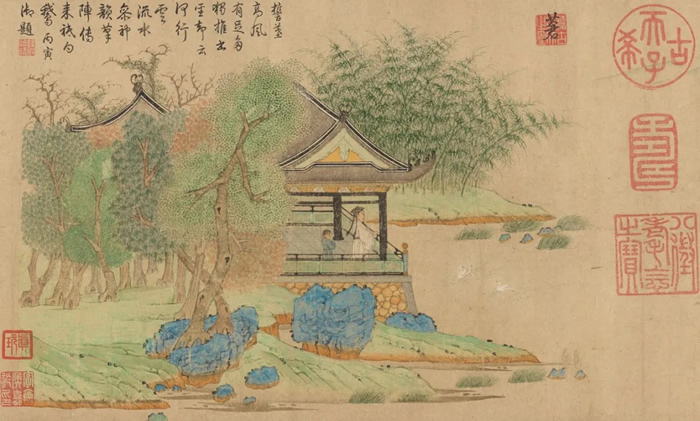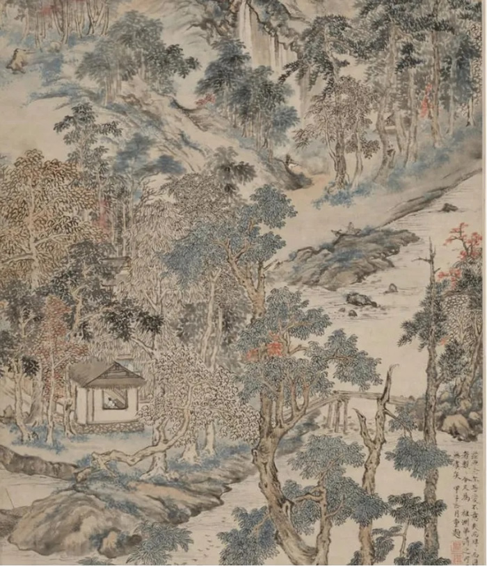 明末清初,項(xiàng)圣謨,秋林讀書圖(局部),大英博物館