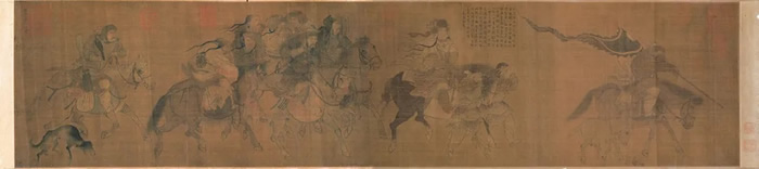 這張畫畫的也非常好,比如從馬的細(xì)節(jié)看,歷史上韓干畫馬,李公麟畫馬很有名,還有宋代畫院臨摹的《虢國(guó)夫人游春圖》中的馬也非常細(xì)致精彩。但是那些馬與《文姬歸漢圖》里的馬相比脂粉氣太濃了,形象的力道和生命氣息遠(yuǎn)遠(yuǎn)不如《文姬歸漢圖》,畫中的馬很簡(jiǎn)練,線條也是曲鐵斷金。我覺得《文姬歸漢圖》中畫的馬在古代是畫的最好的。