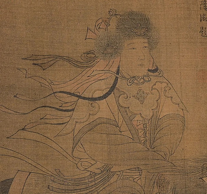 那么這幅畫所表現(xiàn)的蔡文姬是什么身份?她是流落匈奴之后當(dāng)了左賢王的王妃,曹操惦記老友蔡邕有個(gè)女兒還流落在匈奴,所以用重金將她贖回來。這就是我們民間故事之中的蔡文姬,也是畫中著力表現(xiàn)的身份高貴的蔡文姬形象。