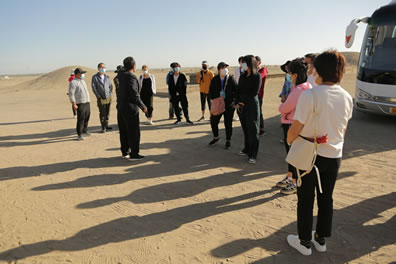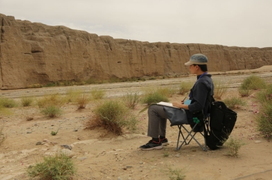 上午藝術(shù)家參觀佛爺廟灣魏晉墓、敦煌-陽關(guān)舊址,下午藝術(shù)家參觀陽關(guān)博物館,采風(fēng)寫生。
