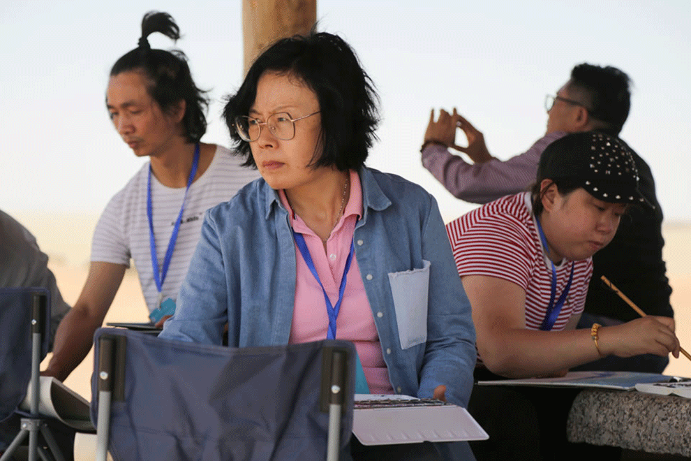 上午藝術(shù)家赴莫高窟參觀,下午采風(fēng)寫生;晚飯后,藝術(shù)家赴鳴沙山、月牙泉采風(fēng)寫生 。