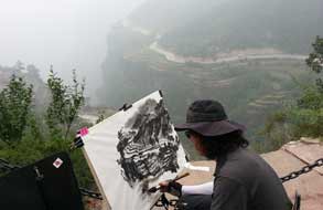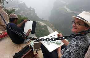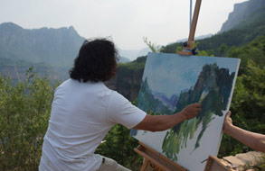 - “2014中外藝術(shù)家太行對(duì)話”進(jìn)入第四天,今日藝術(shù)家們的狀態(tài)可以用“投入”二字形容。早上經(jīng)過簡(jiǎn)單的早餐與畫材準(zhǔn)備,藝術(shù)家們就向太行峽谷進(jìn)發(fā)了。