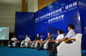 - 6月19日,“2014中外藝術(shù)家太行對(duì)話進(jìn)校園”活動(dòng)走進(jìn)中州大學(xué)。參加活動(dòng)的藝術(shù)家以“人生·藝術(shù)·夢(mèng)想”為主題進(jìn)行了演講,并回答中州大學(xué)學(xué)子們的提問。