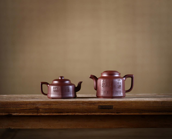 “無極太虛氣中理,太極太虛理中氣。乘氣動(dòng)靜生陰陽,陰陽之分為天地。”作品壺身由下而上,由八方漸變?nèi)雸A,寓意方圓陰陽之間相生循環(huán),壺蓋蓋沿適當(dāng)寬出,有伏羲一劃開天地之意境,又以陰陽魚立體凹凸首尾相銜接,象征陰陽相生相克。
