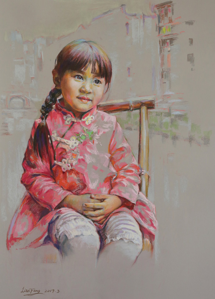 近年來,連放的粉畫創(chuàng)作愈趨成熟和完善。他幾乎每年參加上海舉辦的“粉畫年度展”,頗獲佳評。他的作品質(zhì)樸清新,不事虛華,一如他的為人坦誠實在。他擅長人物描繪和風(fēng)景寫生,色彩溫潤絢麗,筆觸奔放而不失細膩,很注重畫面的細節(jié)刻畫和意境內(nèi)涵,因此十分耐看。連放的畫還有一個顯著特點,善于充分利用色粉紙的底色,大片的保留底色,這與中國畫技法中的“留白”以及“計白當黑”似有異曲同工之妙,可謂“此時無聲勝有聲”。這個特點在他的人物畫作品中表現(xiàn)得尤為突出,比如他畫的《父親》、《老師》、《窗前》、《自畫像》等,細微處精雕細刻筆筆相扣,而背景處理則寥寥數(shù)筆甚而不著一筆,這樣使人物主體更為突出,亦使畫面呈現(xiàn)一種虛實相生張弛有度的藝術(shù)效果,使畫面顯得十分空靈,極富視覺上的韻律節(jié)奏和快感??梢哉f,充分而恰到好處的運用底色既是色粉畫表現(xiàn)手段上的一種取舍和選擇,也是藝術(shù)上的高度提煉和概括,往往可以取得事半功倍的效果。故此,我以為,一幅上乘的粉畫作品,無須畫得面面俱到,更不必畫得像“油畫”,粉畫貴在以少勝多,粉畫有它自己獨特的藝術(shù)語言。顏文樑先生曾動情地把粉畫喻為美術(shù)百花園中翩翩起舞的“花蝴蝶”,而連逸卿先生則強調(diào):“粉畫就是粉畫,粉畫是無可替代的......粉畫是小畫種,但藝術(shù)并無大小之分,只有優(yōu)劣之別。”——是的,粉畫魅力獨具,是無可替代的,而這一點,恰恰是連放教授多年來孜孜以求,并以他的創(chuàng)作實踐所證明和體現(xiàn)的。