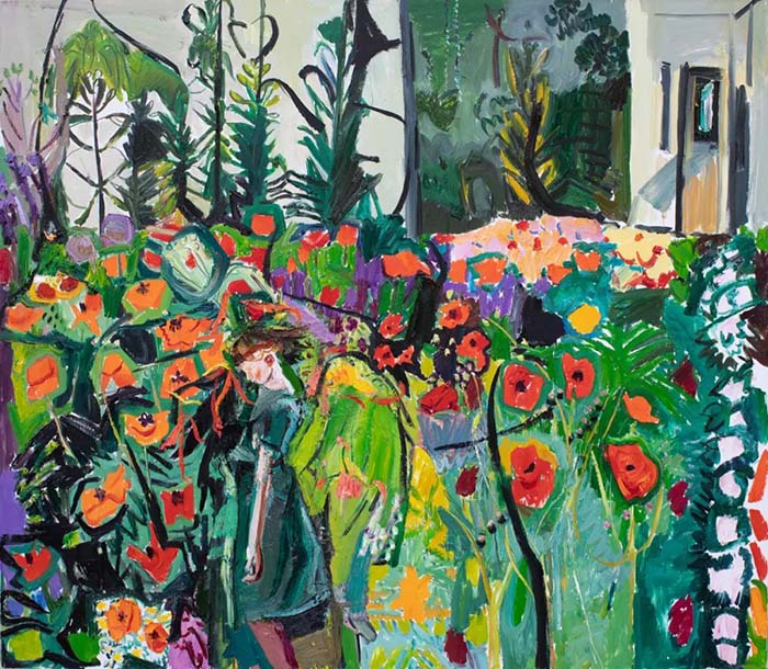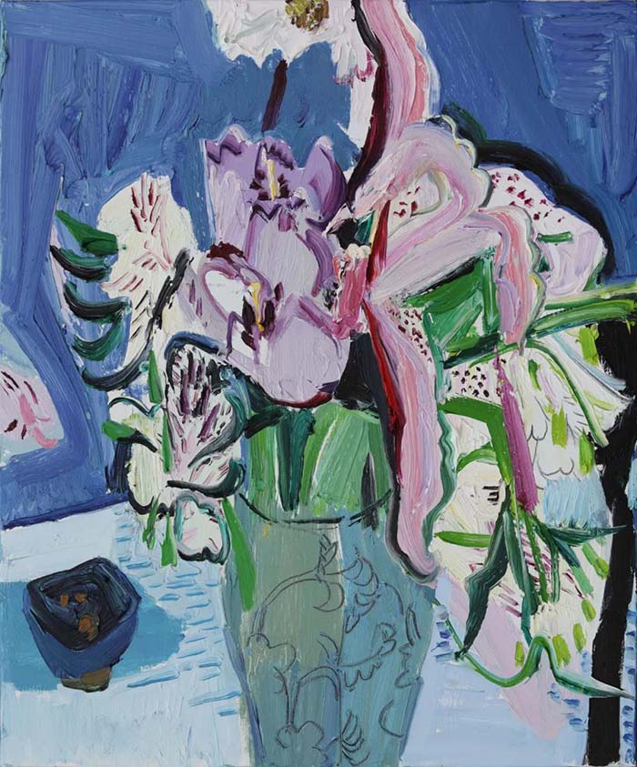 這次展覽中,四件花卉作品將整個(gè)展覽的基調(diào)定格在一種生機(jī)和喜悅之中,鮮明的筆觸,短促和綿長(zhǎng)交錯(cuò)相織。明朗的色彩,寶石藍(lán)和粉紅的纏繞,充滿(mǎn)了希望、自由和奔放的氣息。閆平這么描述:“每一次畫(huà)花都是一次心靈的洗滌。過(guò)去的多年里,當(dāng)我不快樂(lè)或心感疲累,我都去買(mǎi)一大抱花送給我自己,暫時(shí)隔絕與外界的聯(lián)系與花兒同處,在它們那里感受歲月的秘密而倍感安全?!?/p>