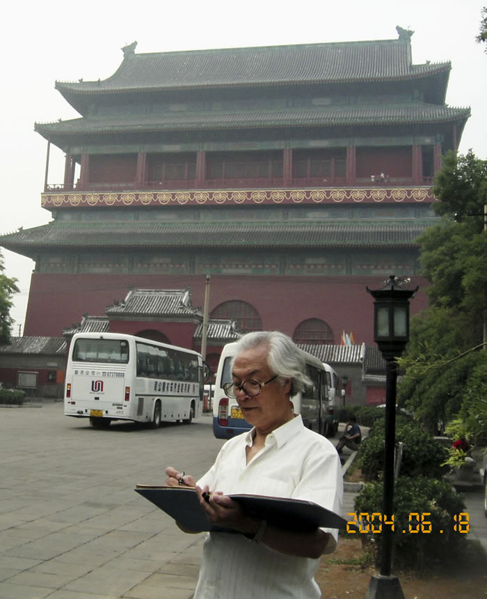 2004年,在北京鼓樓前寫(xiě)生