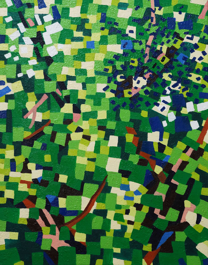 “樹林”這一主題從年少學(xué)畫初始伴隨謝山至今,他不厭其煩地畫著樹林,山野叢林、路邊樹叢、繁茂的樹葉、抽象的色塊……也正是通過樹林作品讓我們有機(jī)會(huì)能夠認(rèn)識(shí)謝山。