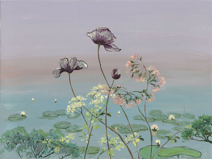 經(jīng)過了半個(gè)世紀(jì)的風(fēng)雨,人生如一艘航行中的船,它在驚濤駭浪中也好,風(fēng)平浪靜中也好,我以各種面貌呈現(xiàn)在人前,忽然到了我八十四歲的時(shí)候,我回到了畫室,馳騁在畫布前,我在紐約重拾畫筆,拿起畫筆,我覺得時(shí)光穿越了,我成了大學(xué)生時(shí)代的女學(xué)生顧月華,忽然發(fā)現(xiàn)這么多年,我一生都在扮演著不同的角色,母親、妻子、女兒、姐妹及各種頭銜的女人,那個(gè)女人明明是我,但又不是真正的我,我坐在畫架前,我知道真正的我回來(lái)了,我的靈魂回到我的身體里,我現(xiàn)在是重生的自己,渴望回到故鄉(xiāng),尋找回一個(gè)更完整的自己,于是有了這個(gè)畫展。