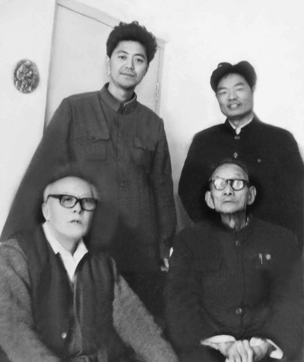 1979年10月,李苦禪(前排左)、蕭龍士(前排右)、薛志耘(后排左)、歐陽龍(后排右)