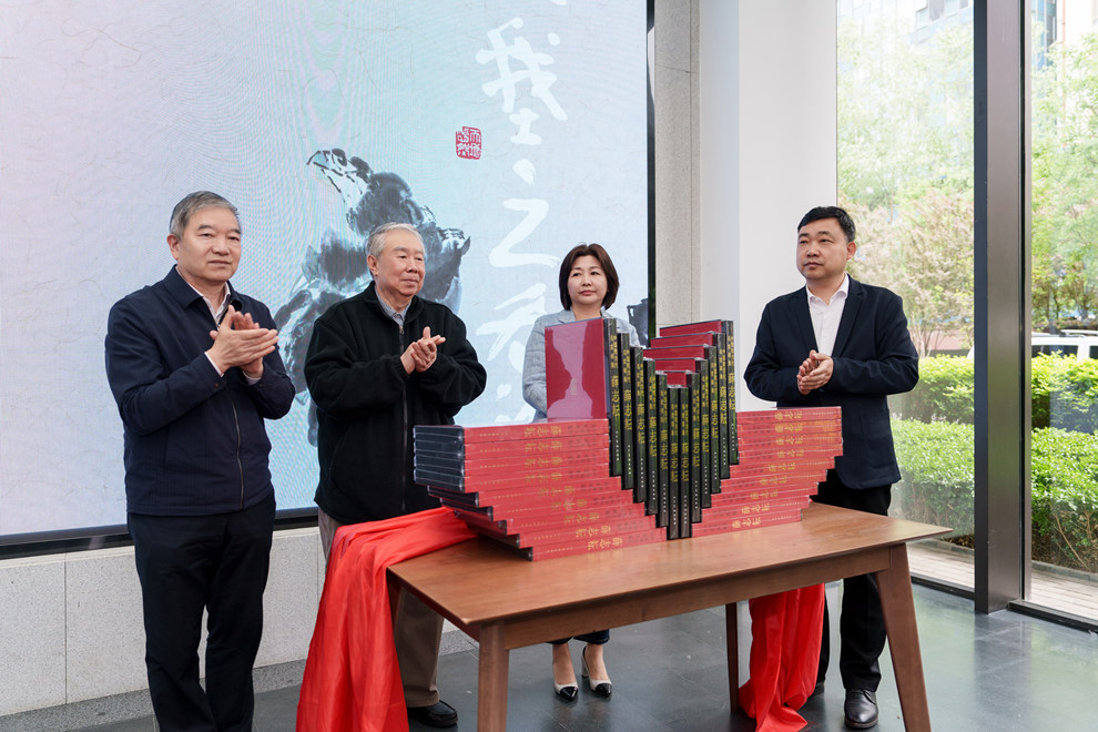 任啟亮、郭瑞、王遠、楊洪軍(從左至右)為《中國現(xiàn)當代名家畫集啊——薛志耘》新書揭幕1