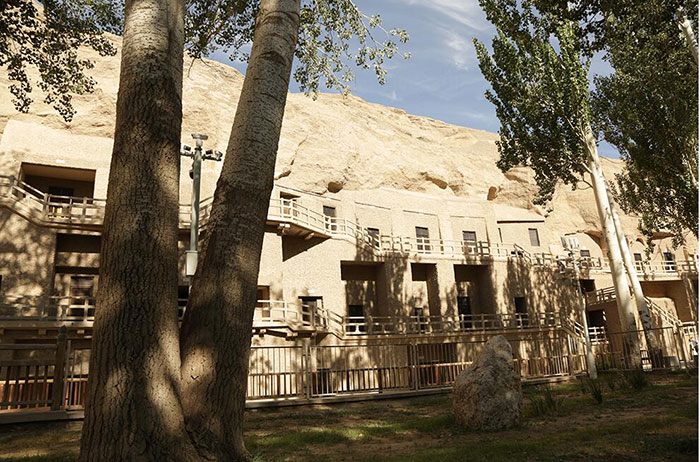 9月1日上午,中外藝術(shù)家集體參觀了敦煌博物館、西千佛洞。距離敦煌市區(qū)約35公里處,西千佛洞因位于敦煌莫高窟(俗稱“千佛洞”)之西而得名,它開鑿于黨河河岸的懸崖峭壁上,這里也是敦煌藝術(shù)的重要組成部分。