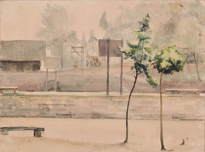 《中大操場(chǎng)》紙本水彩 23x30 1944