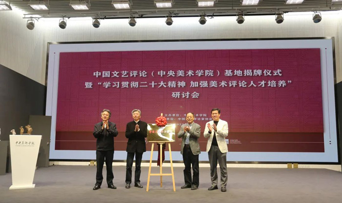 2022年10月27日上午,中國文藝評論(中央美術(shù)學(xué)院)基地揭牌儀式暨“學(xué)習(xí)貫徹二十大精神加強美術(shù)評論人才培養(yǎng)”研討會在北京舉行。會議旨在深入學(xué)習(xí)黨的二十大精神,貫徹落實習(xí)近平總書記關(guān)于文藝工作的重要論述和文藝評論重要指示批示精神,特別是習(xí)近平總書記在中國文聯(lián)十一大、中國作協(xié)十大開幕式上的重要講話精神,落實中宣部等五部門聯(lián)合印發(fā)的《關(guān)于加強新時代文藝評論工作的指導(dǎo)意見》和中國文聯(lián)印發(fā)的《加強新時代文藝評論工作實施方案》,進(jìn)一步推進(jìn)文藝評論基地建設(shè),打造高水平的文藝評論交流平臺,促進(jìn)多元文化融合,共同推動文藝評論工作以及文藝評論人才培養(yǎng)在新時代的創(chuàng)新發(fā)展。