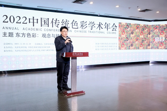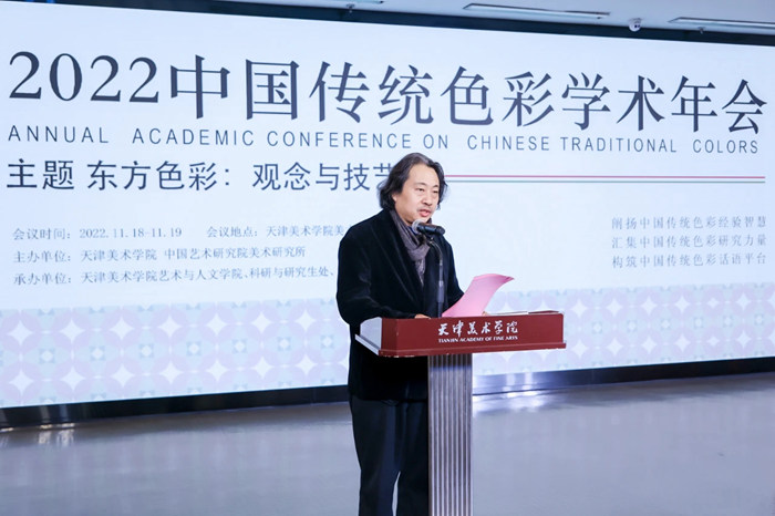 11月18日上午9:00,由天津美術(shù)學(xué)院、中國藝術(shù)研究院美術(shù)研究所聯(lián)合主辦,天津美術(shù)學(xué)院藝術(shù)與人文學(xué)院、科研與研究生處、藝術(shù)創(chuàng)作研究中心承辦,中國藝術(shù)研究院國畫院協(xié)辦的“2022中國傳統(tǒng)色彩學(xué)術(shù)年會”于在天津美術(shù)學(xué)院開幕。