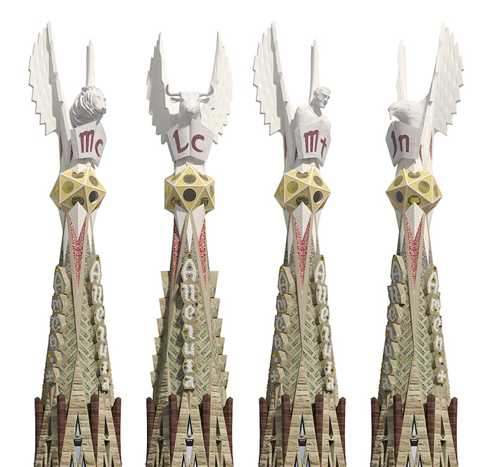 其中,馬可塔樓以帶翅膀的獅子雕塑封頂,象征著力量、勇氣和威嚴(yán);路加塔樓則以帶翅膀的公牛封頂,象征著平靜和謙遜。之后的兩座塔樓——約翰塔樓將會(huì)以鷹的雕塑封頂,馬太塔樓將會(huì)以天使的雕塑來(lái)封頂。