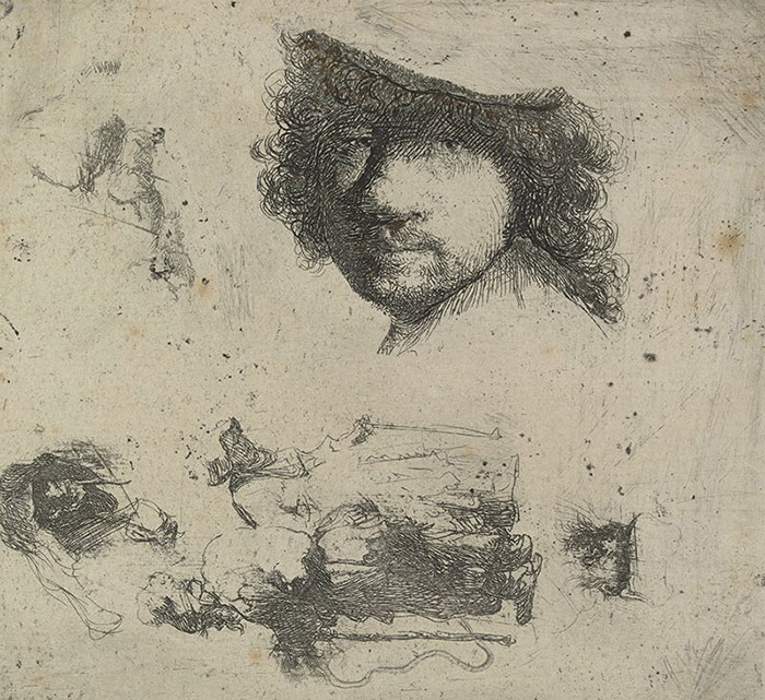 《倫勃朗頭像草稿》,倫勃朗,1632年,銅版畫,巴黎美術(shù)宮藏