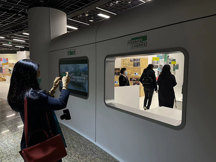 展廳設計成“站臺”和“車廂”樣子,猶如一列駛入美麗中國的列車,搭載著“田野調查”的觀眾們