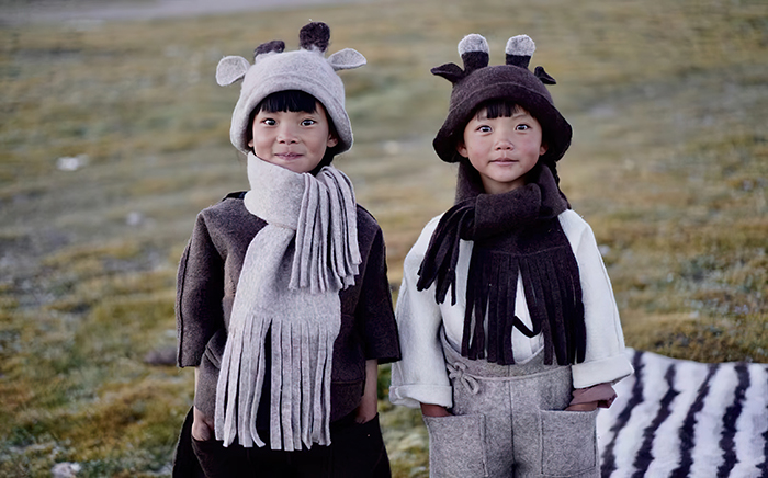 戴著帕卓巴手工帽和圍巾的小朋友