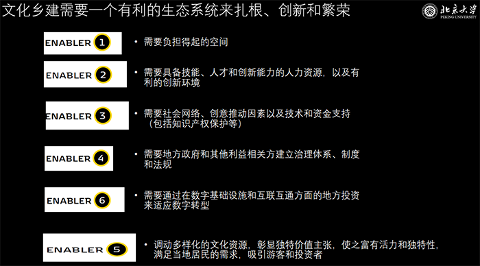 在談及如何推進(jìn)文化鄉(xiāng)建的問題時(shí),向勇認(rèn)為,文化鄉(xiāng)建需要一個(gè)有利的生態(tài)系統(tǒng)來扎根、創(chuàng)新和繁榮。這就需要從“文教鄉(xiāng)建——鑄魂”“文遺鄉(xiāng)建——培基”“文藝鄉(xiāng)建——塑形”和“文創(chuàng)鄉(xiāng)建——強(qiáng)體”四個(gè)角度進(jìn)行強(qiáng)化,共同對(duì)鄉(xiāng)村文化的資源進(jìn)行激活培育,進(jìn)而去塑造鄉(xiāng)村特色產(chǎn)業(yè)的振興。而在這一過程中,一定要注重根土意識(shí),尊重天人合一的自然規(guī)律;進(jìn)行活態(tài)涵養(yǎng),從而達(dá)到物盡其用;并且激發(fā)戀地情結(jié),將個(gè)人的情感與手作創(chuàng)意相結(jié)合方能呈現(xiàn)匠心之作。最后,向勇以中國文化產(chǎn)業(yè)協(xié)會(huì)鄉(xiāng)村文化創(chuàng)意專業(yè)委員會(huì)的實(shí)際案例,向聽眾分享了其推動(dòng)文化創(chuàng)意賦能鄉(xiāng)村振興,開展廣泛的社會(huì)動(dòng)員,構(gòu)建全國鄉(xiāng)創(chuàng)協(xié)同創(chuàng)新生態(tài)體系的心得與經(jīng)驗(yàn)。
