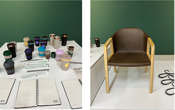 展覽現(xiàn)場,將廢棄的咖啡渣再利用與再設(shè)計(jì),重新制造出新的產(chǎn)品