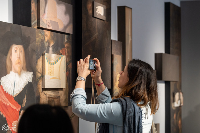 作為本次群展青年藝術(shù)家的代表,中國藝術(shù)研究院美術(shù)學(xué)博士畢曉慧,同時也是作品《當(dāng)<夜巡>來到中國》主創(chuàng)之一,對此感觸頗深:“這部巨型繪畫裝置作品由導(dǎo)師張見先生,帶領(lǐng)我們10位藝術(shù)家,經(jīng)過疫情期間一年多的不懈努力共同創(chuàng)作,它凝結(jié)著我們50余次不間斷的思想碰撞與融合,更凝結(jié)著我們從各自獨立創(chuàng)作到組裝之后首次見到作品的驚艷心情。