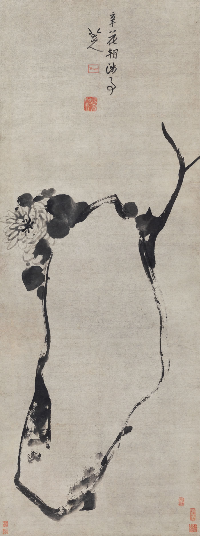 此外,大觀夜場還將推出王翚盛年精品,為友人楊青村使黔所作《普安晉爵圖》軸,楊青村遍請(qǐng)十余位朋友兄弟在畫上裱邊題字,其中湯右曾、顧圖河、查慎行等都是當(dāng)時(shí)文壇聞人。八大山人于1690-1695年間的創(chuàng)作多次使用“涉事”一語,出自禪門“涉事而真”思想,是貫穿其晚年藝術(shù)的核心思想線索,此番上拍八大山人《花朝涉事》軸(1691年)即為其“涉事”概念中著名的一件,曾經(jīng)二十余次出版、著錄。另有明代書法卷、軸作品一組,以綾本巨幅,十余次出版的王鐸《草書李欣詩〈晚歸故園〉》軸領(lǐng)銜。