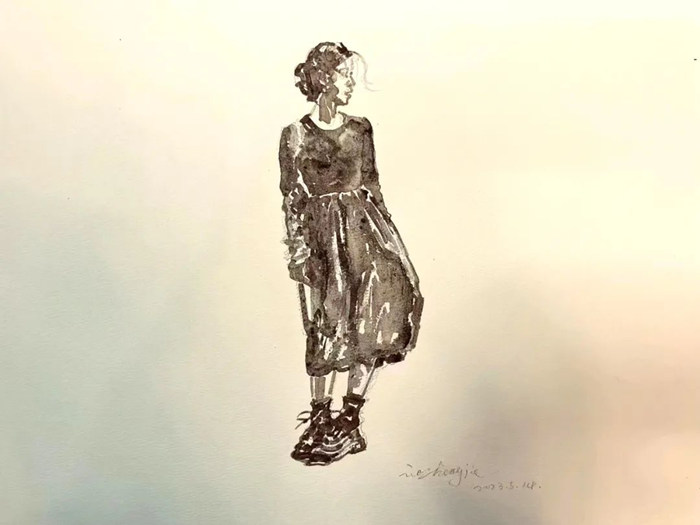 聶正杰,《南京東路打卡》,紙本水彩、礦物質(zhì)顏料,31x41 cm,2023