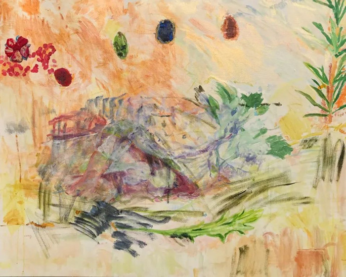 叢叢,《草莓花正在開(kāi)》,布面油畫(huà),105X130 cm,2020