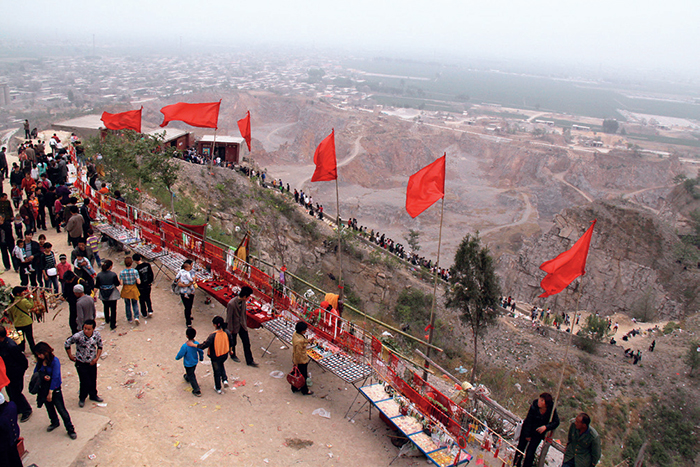 堯山僅存一半的山上建了新廟,人們沿著廢墟里的山路前來朝拜 喬曉光拍攝 2011年